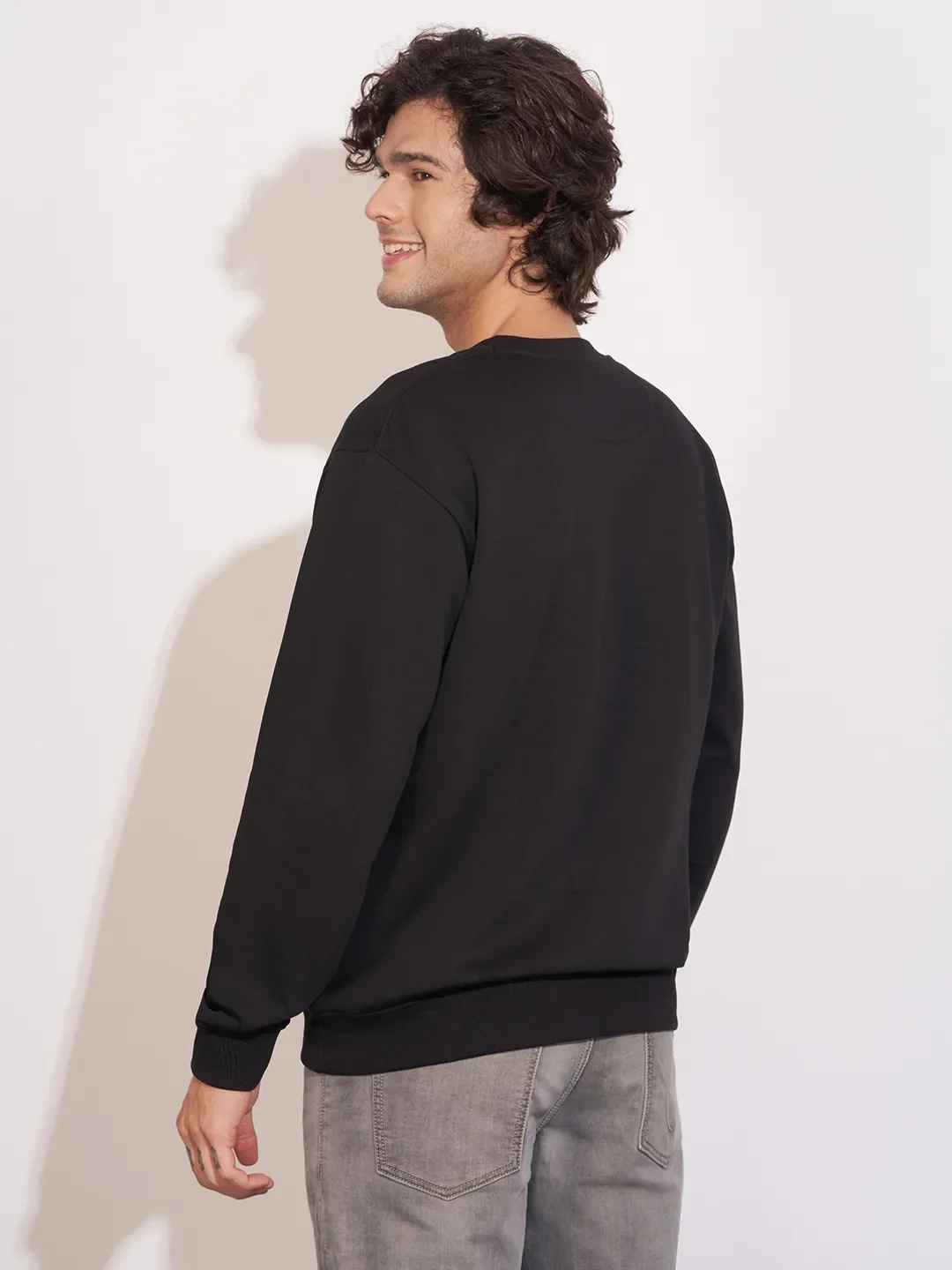Black Easy Fit Round Neck Men's Sweatshirt by Being Human Clothing