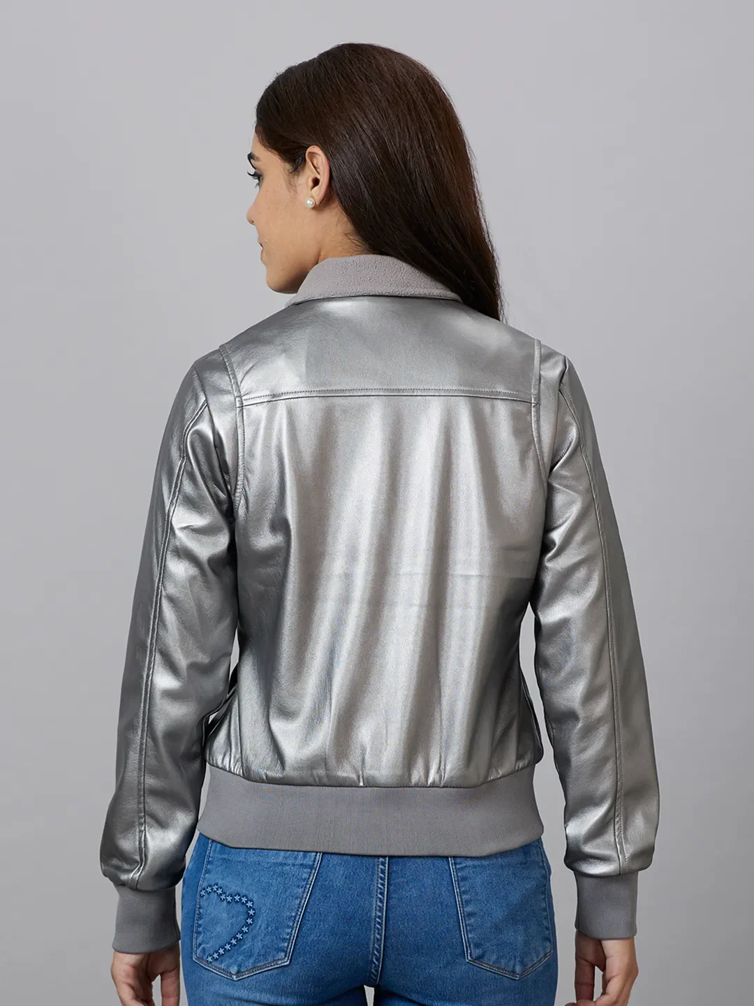 Silver Bomber Semi Fit Long Sleeve Women's Jacket By Being Human Clothing