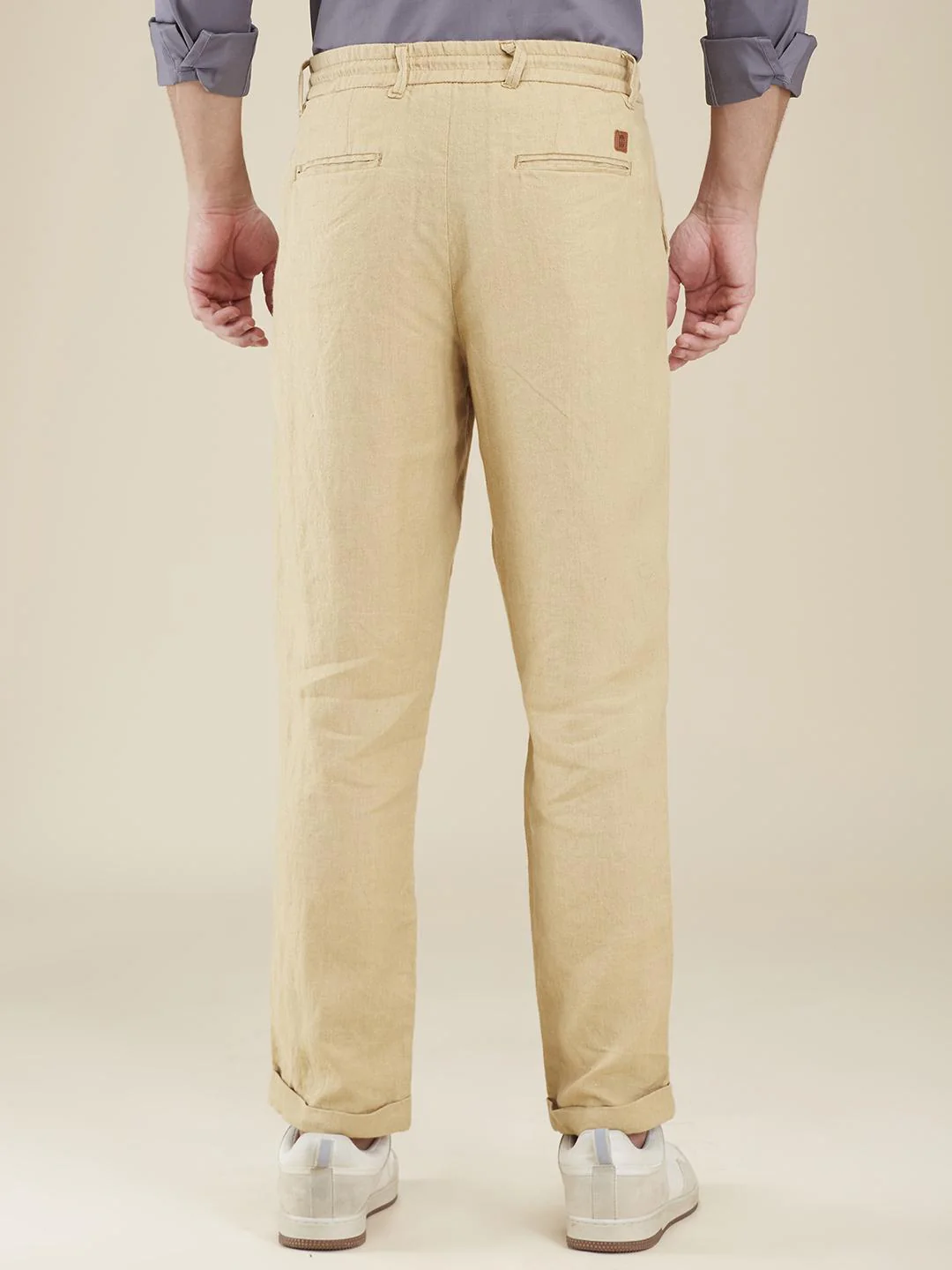 Step out in style with these khaki chinos from Being Human. Featuring a mid-rise waist and solid pattern, these trousers are perfect for casual occasions. Their versatile design and comfortable fit make them an essential addition to any fashion-conscious wardrobe.