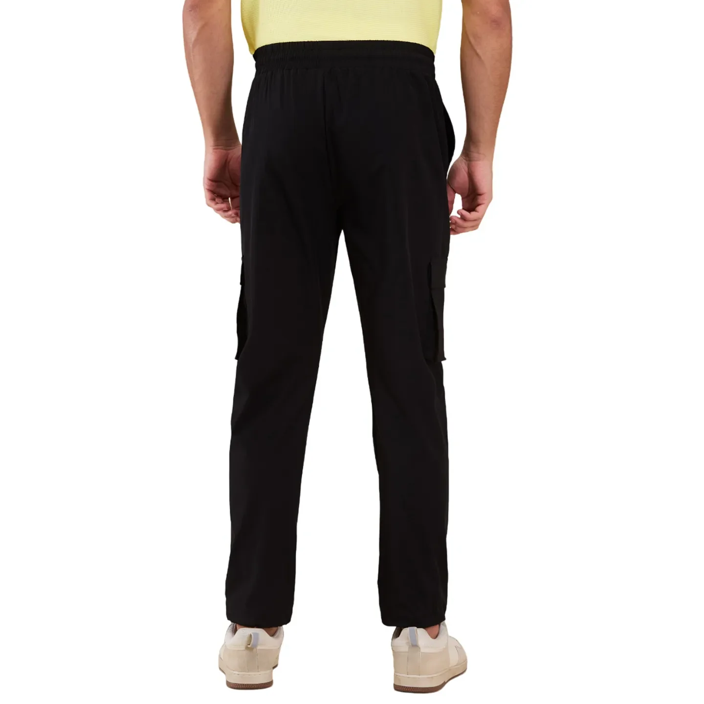 Conquer casual style with these black cargo trousers from Being Human. These mid-rise pants offer a perfect blend of functionality and fashion. The solid black design exudes sophistication, while multiple pockets add practicality. Versatile and comfortable, they're ideal for any laid-back occasion.