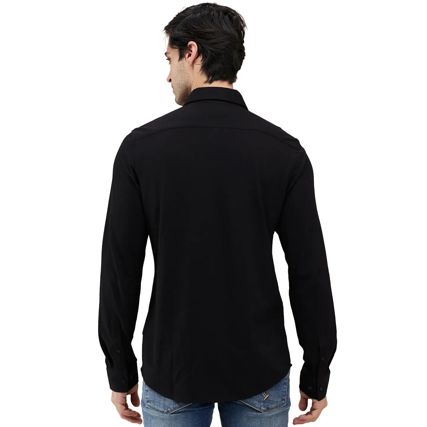 Black Slim Fit Regular Collar Men's Shirt by Being Human Clothing