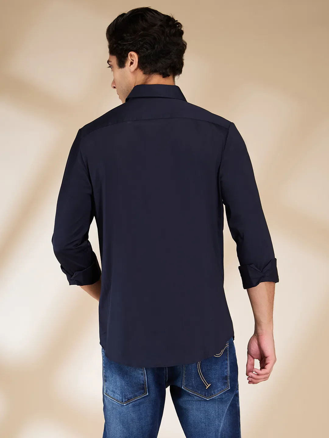 Navy Slim Fit Regular Collar Men's Shirt by Being Human Clothing