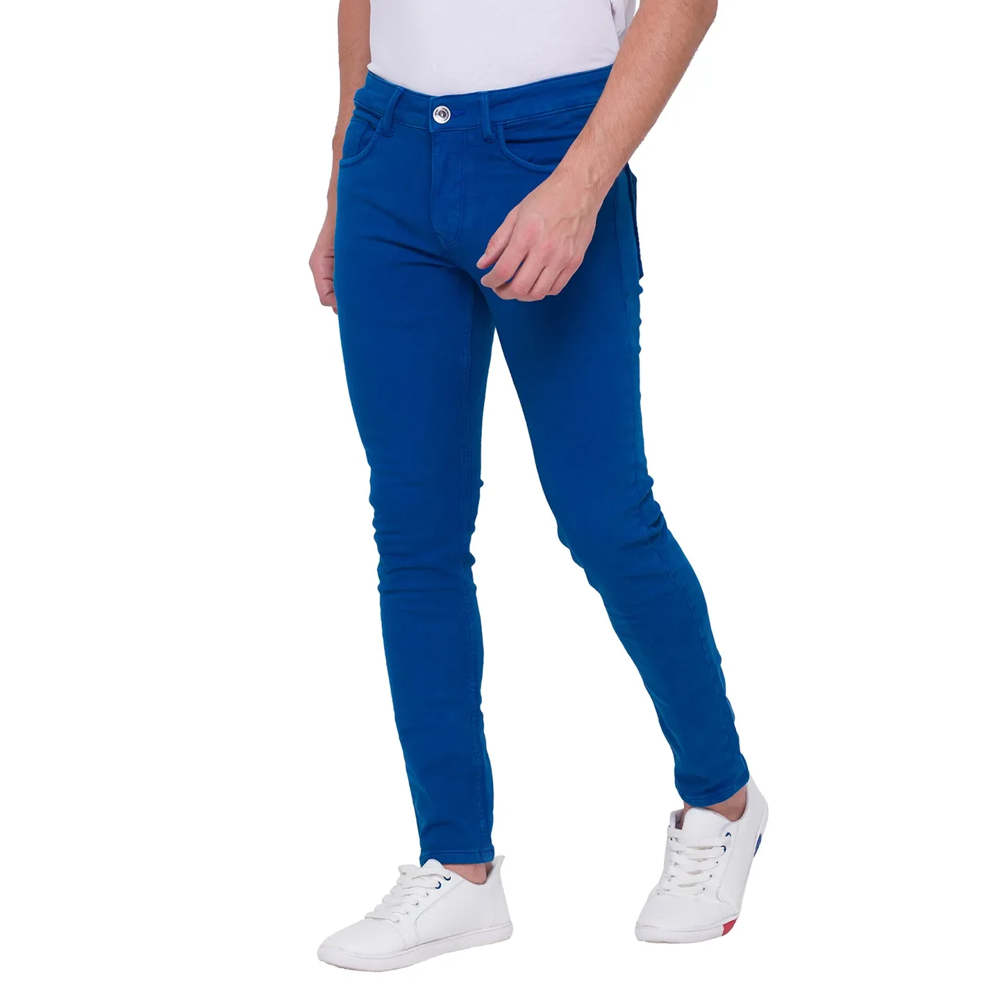Revolutionise your everyday dressing with this marine blue denim that is striking and unique. Style it with a short-sleeved shirt or a polo in neutral colours to harmonize your ensemble. The cropped fit and stretch ensures you stand out!
