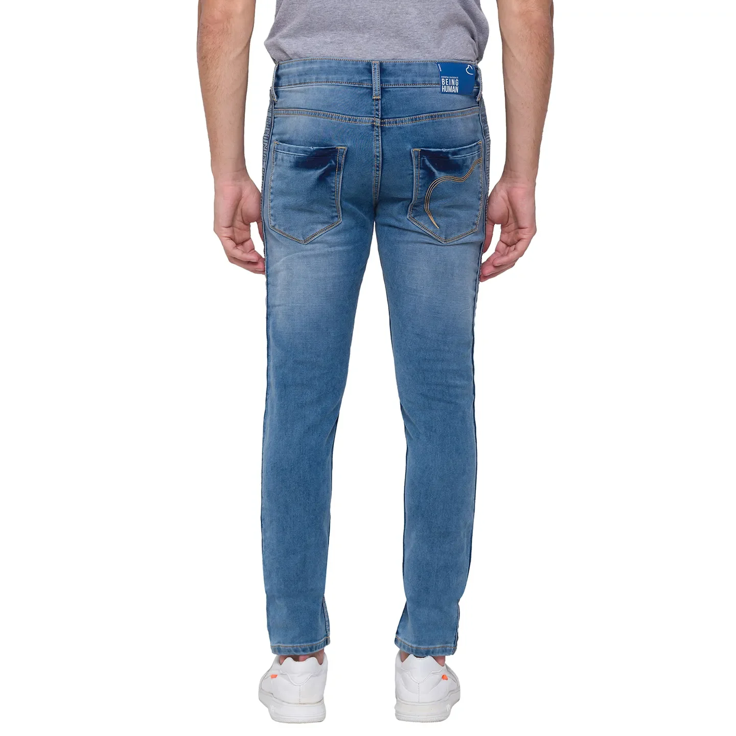 Light Blue Jogger Fit Denims For Men By Being Human Clothing