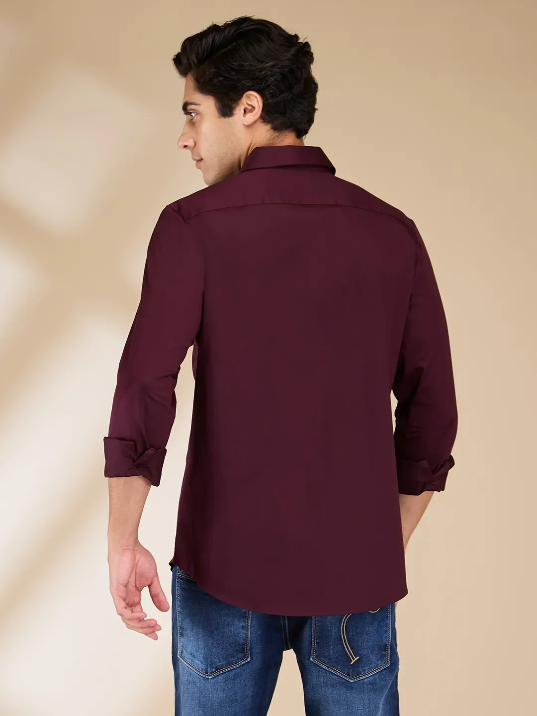 Burgundy Slim Fit Regular Collar Men's Shirt by Being Human Clothing