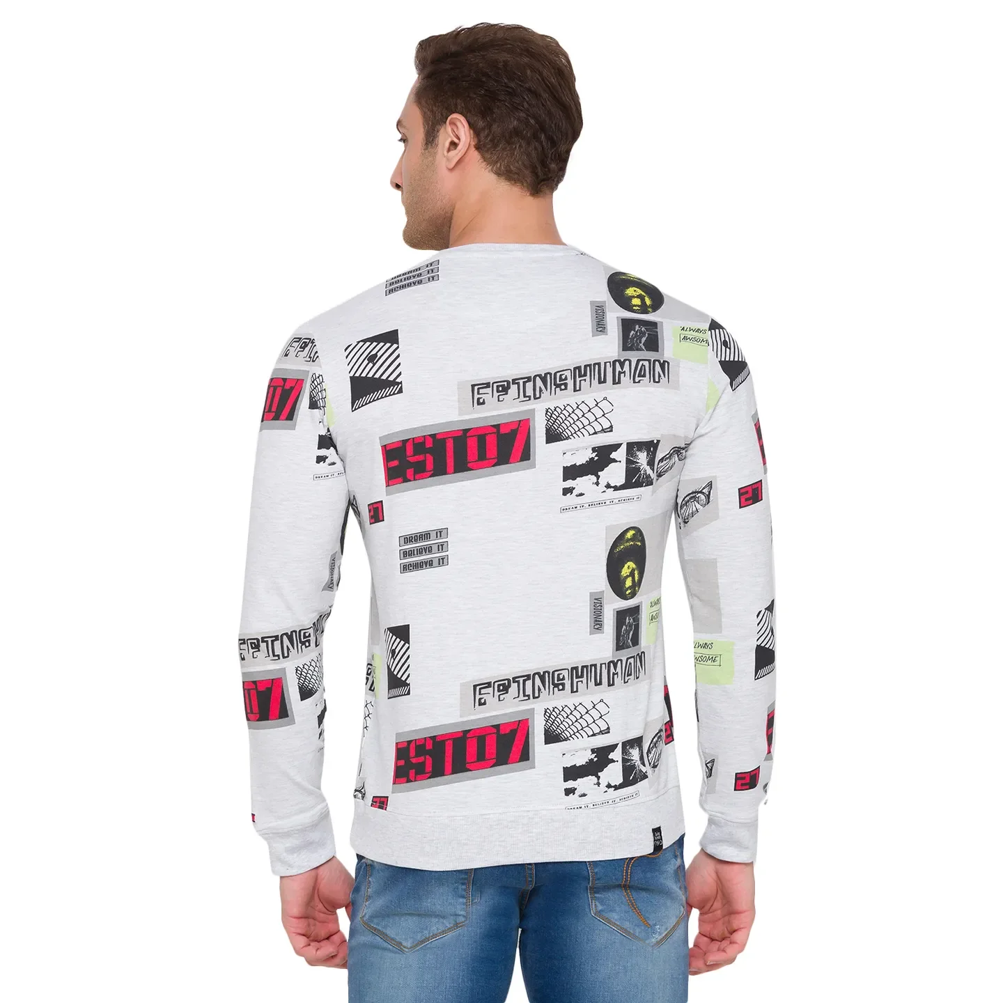 Grey Regular Fit Round Neck Long Sleeves Cotton Men's Sweatshirt by Being Human Clothing