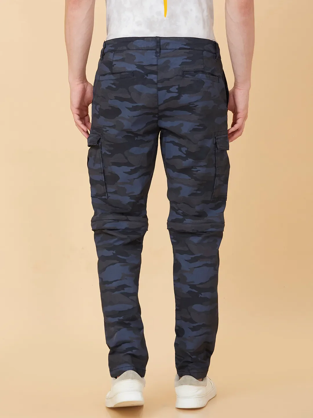 Stand out in these greyish-blue cargo trousers. With a mid-rise waist and camouflage pattern, they're perfect for casual adventures.