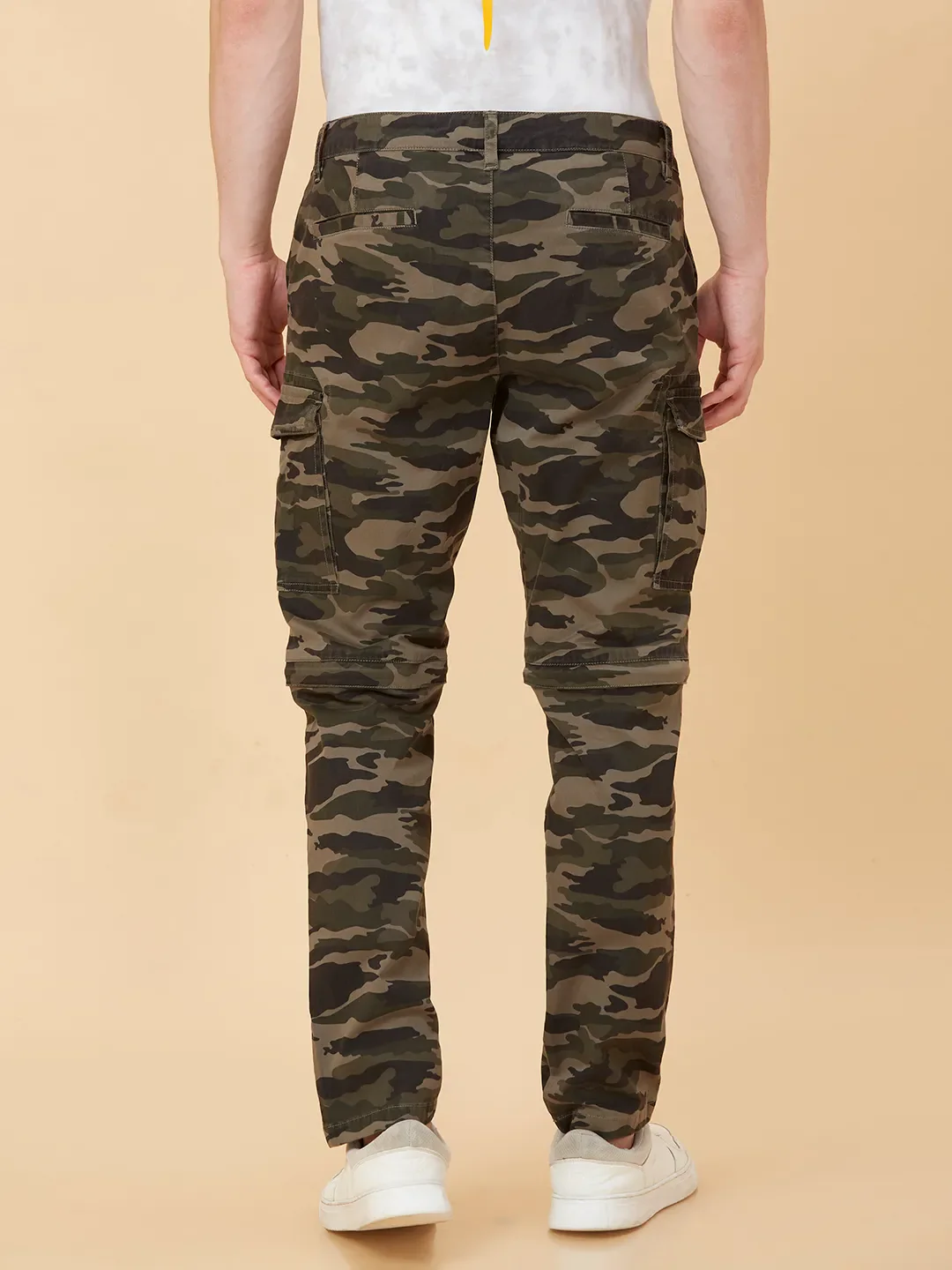 Embrace a rugged look with these olive cargo trousers. The camouflage pattern adds an edgy touch to casual outfits. The mid-rise waist ensures a comfortable fit for all-day wear.