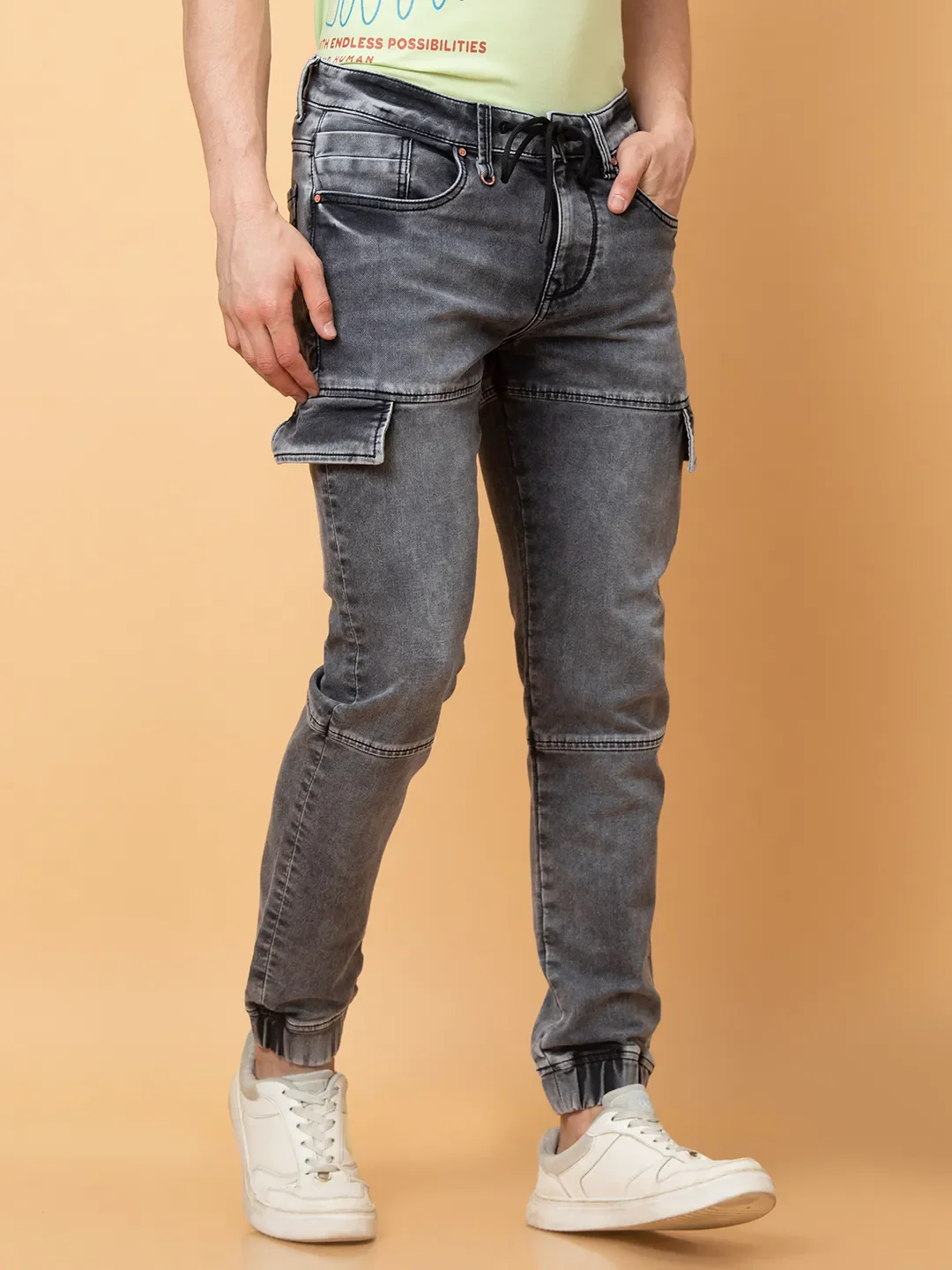 Grey Jogger Fit Denims For Men By Being Human Clothing