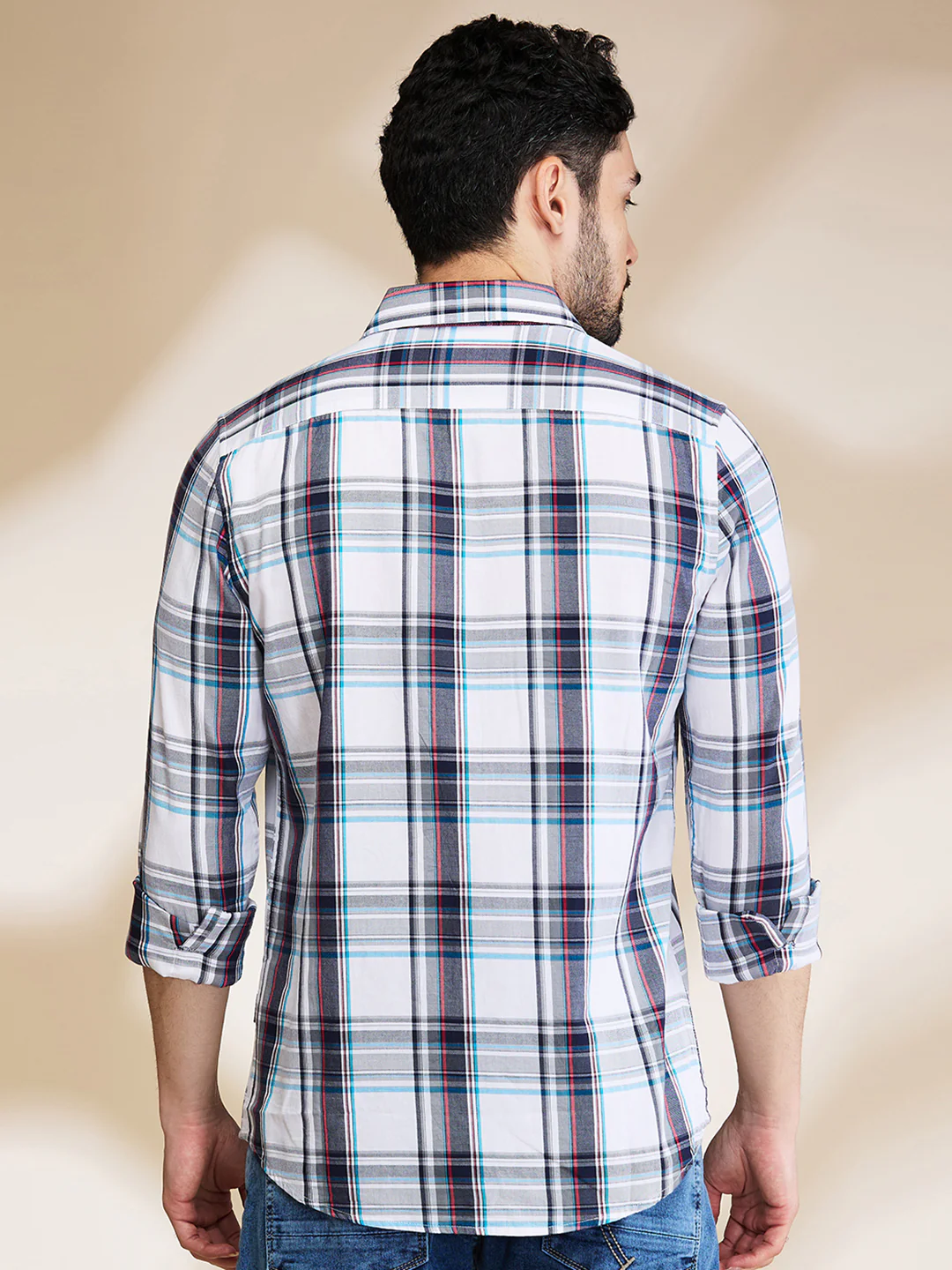 Look sharp in this white checked shirt with a spread collar. Ideal for casual occasions, this regular-fit shirt adds a touch of sophistication to your everyday wardrobe.