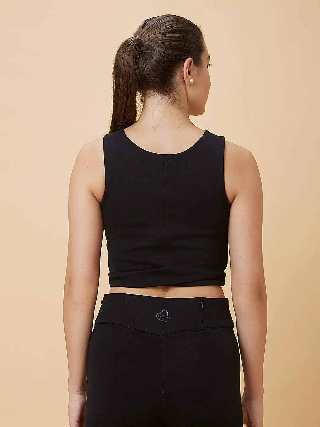 Black Slim Fit Women's Sleeveless Cropped T-Shirt By Being Human Clothing