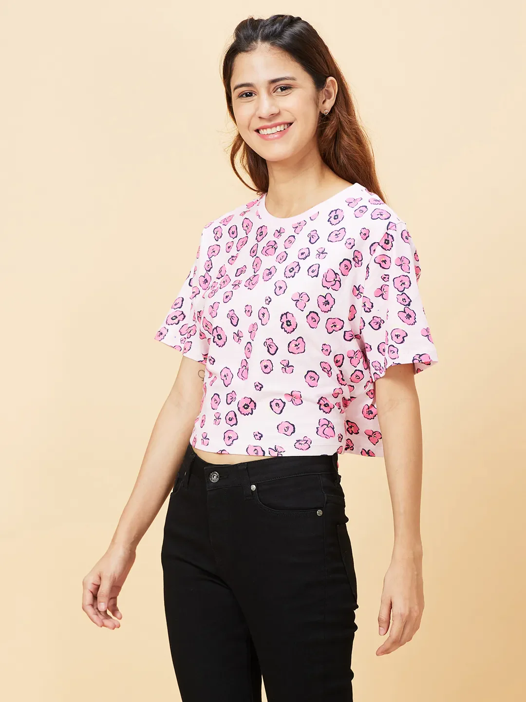 Pink Boxy Fit Women's Cotton Cropped T-Shirt By Being Human Clothing